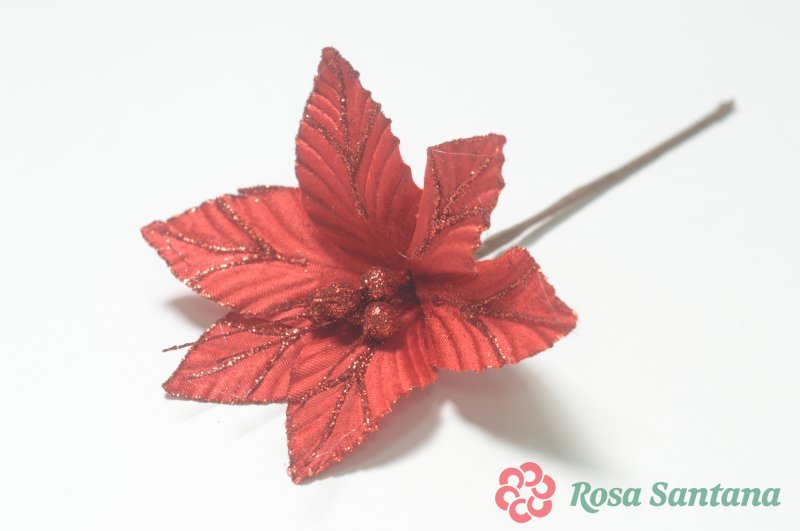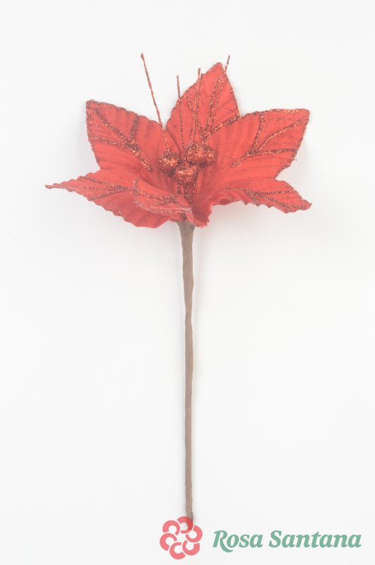 Голова пуансеттии с ножкой (d-19 cm) для ветки, венка